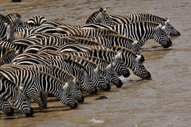 Home Herd of Burchell’s Zebra driking, Mara River, Masai Mara, Kenya Herd of Burchell's Zebra driking, Mara River, Masai Mara, Kenya